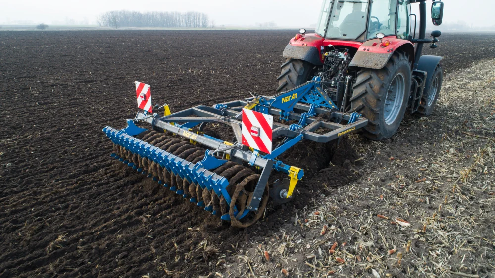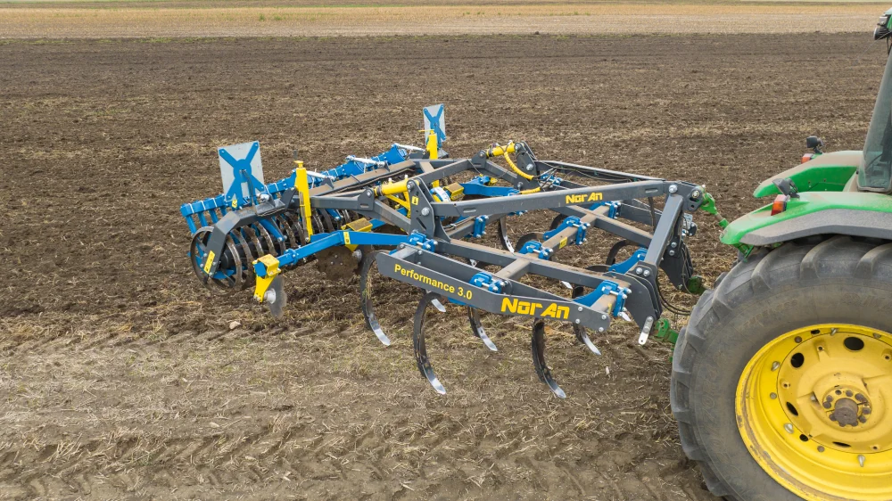 Samozrejme. S výškou rámu 85 cm, 3-nosníkovou konštrukciou a rozstupom nosníkov 70 cm má NorAn Performance obrovský prietokový prierez, takže nemulčované kukuričné strnisko nie je žiadny problém, ale zvládne aj porast na zelené hnojenie s výškou 80-90 cm.